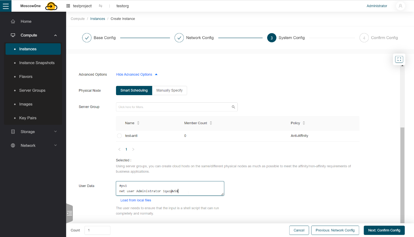 В поле User Data введите скрипт: